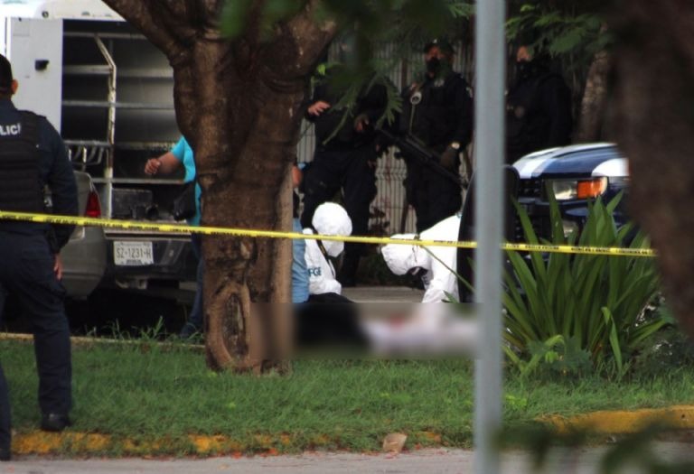 El cuerpo de una persona sin vida fue dejado esta mañana en la Supermanzana 21 de Cancún, en la avenida Yaxchilán afuera de una televisora.