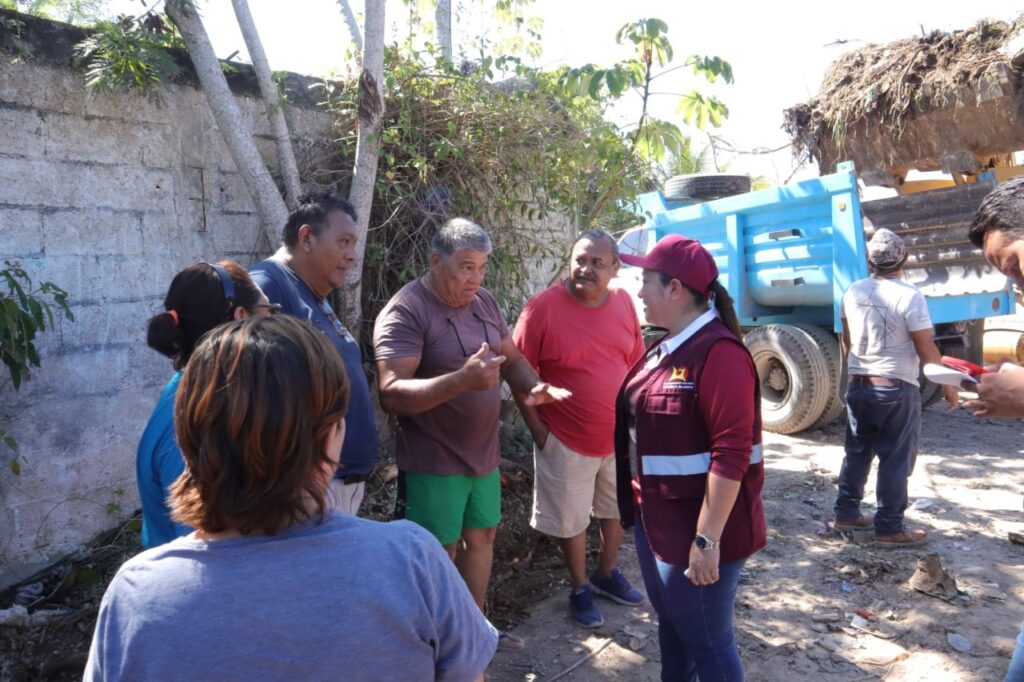 La presidenta municipal de Othón P. Blanco, Yensunni Martínez Hernández, visitó la colonia Pacto Obrero en atención a la denuncia ciudadana por parte de los habitantes de ese lugar sobre la limpieza de un predio baldío.