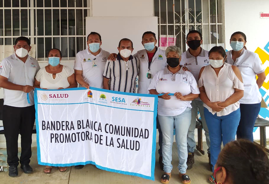 Hizo notar que al cumplir con el 95 por ciento de los lineamientos del programa de comunidades promotoras de salud, los habitantes de Blanca Flor lograron la certificación de su comunidad por lo que de manera simbólica se procedió al izamiento de la bandera blanca y la colocación de una placa que la acredita como “Promotora de la Salud”.